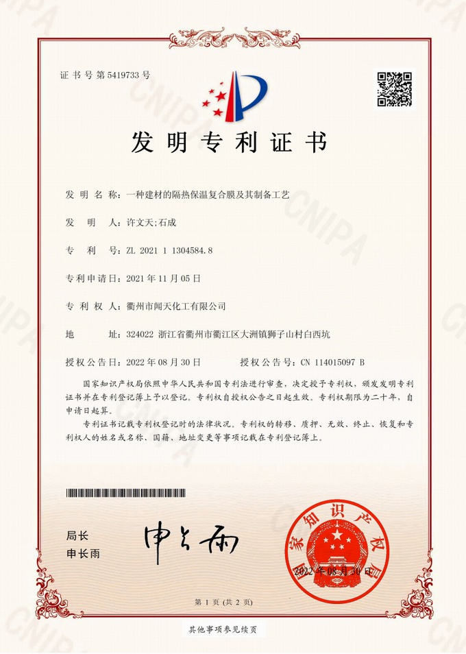 衢州市聞天化工有限公司成立于2003年,是國內研發(fā)、生產氟碳涂料的企業(yè)。衢州傳褀防水防腐工程科技有限公司作為其下屬公司,專業(yè)承接各類防水防腐項目。企業(yè)經過20年的市場磨練,已在鋼構防腐領域、建筑屋面和屋面修繕、防水隔熱領域、建筑外立面的防水隔熱裝飾領域及戶外竹木防腐領域形成了自己獨特的產品體系和個性化解決方案。公司經過多年的努力,已獲得了多項國家發(fā)明專利和新產品科技成果,并參與了中國建筑材料流通協(xié)會組織的《房屋修繕防水工程規(guī)范》的編制,中建協(xié)涂裝委員會浙西工作站設立在我公司。公司的產品有一個共同的特點,就是經久耐用,使用年限超長。鋼構防腐的效果是其他材料的三到五倍使用壽命;屋面防水隔熱的效果是其他材料的三到五倍的使用壽命;建筑外立面的效果是既防水又隔熱保溫,既美觀又不褪色;戶外竹木防腐的效果更是其他材料五倍以上的壽命。